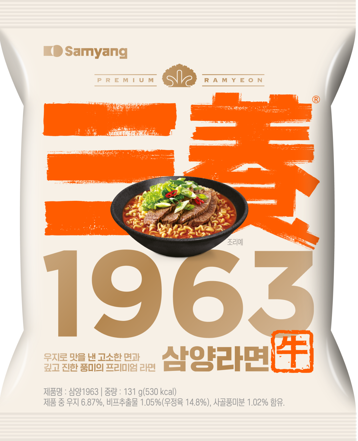 삼양라면은 60여년 전 처음 세상에 선보였던 모습을 현대적으로 재해석하여 귀환한다. 라면의 유탕처리 과정에서 우지를 사용하게 되면 스프와 함께 조리시 소기름의 고소한 맛이 국물에 녹아들며 훨씬 깊고 고소한 풍미를 내게 된다. 우지의 깊은 풍미를 담은 ‘삼양1963’은 고소하고 쫄깃한 면발은 물론, 소고기 · 사골 · 닭고기 국물에 청양고추로 더한 얼큰함, 거기에 단배추와 대파, 홍고추를 넣어 완성한 프리미엄 라면이다.